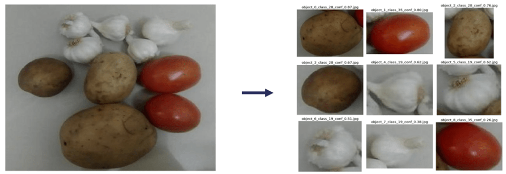 An algorithm for cropping each detected object was built using an open-source computer vision library. This ensures that the separated individual food ingredient images are seamlessly passed on to the Freshness Classification stage.